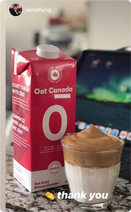 “I love that Oat Canada has a really nice, smooth taste and 0 sugar. I find so many plant-based milk to be aggressively sweet, so I was really happy to find Oat Canada. It's the perfect thing with espresso and makes the most delicious frothy iced lattes!”